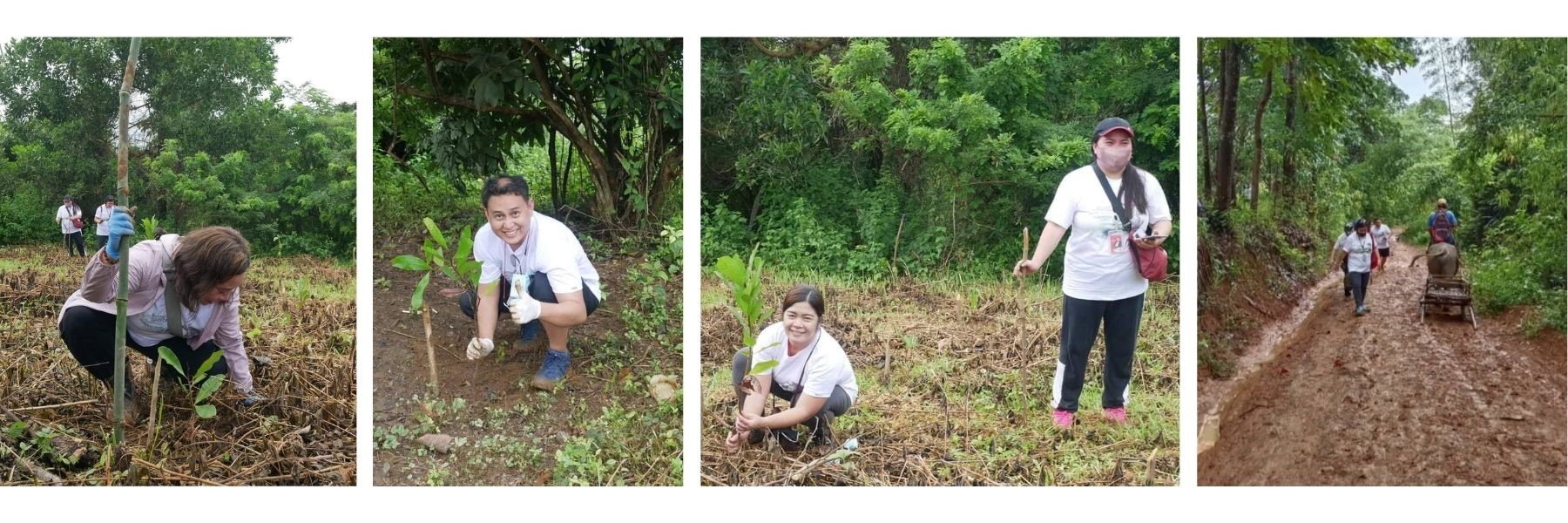 The participants walked and planted one thousand cashew saplings along the three-kilometer path from the Department of Environment and Natural Resources-Community Environment and Natural Resources Office (DENR-CENRO) to the tree planting site.